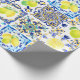 Sommar Sicilian Amalfi Mediterranean majolica Wrapping Papper . En botanisk citrusträdgård mönster med blommigt som inspirerats av den kursivkuranska sommarkonsten i majolica Sicilianska keramiska plattor i färg med blå gult. Klicka på länken "anpassa ytterligare" och använda designen verktyg för att ändra designen om du vill eller anpassar den över en annan produkt som du väljer. Vare sig det gäller valentines day, jul eller tillfälle kommer detta papper att se helt bedövande ut.