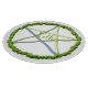 En solskensliknande gult och himlar blå pentakel omges av ett stativ från sommaren träd i denna enkla Litha-design, som är ett av mina försök att skapa pentakler som skildrar var och en av de åtta Wiccan-helgdagarna (sabbets)