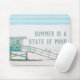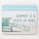Motiv bild av en livvakt torn på vit sandstrand med citatet "Sommaren är sinnestillstånd" på musmattan för att inspirera till positivitet medan du arbetar.