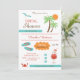 Denna moderna inbjudan är idealisk för att fira en bröllopsfest med strand, hav eller sommartema. Den fräscha och luftiga designen har några strandelement som palmer, flipflops, sol, sniglar, en sommar drink, vågiga linjer, en mås och en söt krabba. Färgpaletten är mjuk och trendig. Detta kort är perfekt för sommarmånaderna, en sommarbröllop eller ett destinationbröllop.
