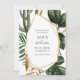 Spara datum-kort med tropisk grönska och trendig gyllene geometrisk mittdel. Perfekt utseende för sommaren och moderna ekologiska bröllop.
