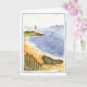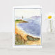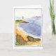 Denna roliga vattenfärg är av en strandplats med dess ror fartyget och fyren i bakgrunden med segelbåtar som seglar blåtthavet.