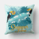 Ge en tropisk atmosfär till alla rum i ditt hem eller kontor. med denna färgglada dekorativa kudd. Den har en tropisk scen med tukaner, tropiska blad och orden "Sommartid".