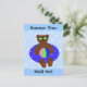 En coola tedybjörn i ett blått flytande rör med en skarp färgad strand boll och sportiska solglasögon på. Sjung ut!