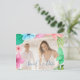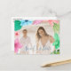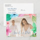 Modern akvarell bryllup spar datum fargrik blush rosa, gron, tealbla tropisk blomster bryllup spar datum postkort med en modern typografi skrift, och med ditt foto. +++++++++++++++ Perfekt for en destination sommar hawaiianskt tema aloha strand, sjosida, havsutsikt, kust, tropisk, nautiskt tema bryllup.