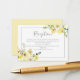 Fintvätt av vattenfärg gula blommor dekorerar detta underbara mottagningskort för bröllopsdag eftermiddag. Kortet för trädgårdsäsong accentueras med ett mjukt grått gräns och botaniskt löv under elegantens soliga ponnyer. Svara vänligt. Blommigt och ljus, perfekt för en utomhusceremoni.
