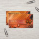 Ett visitkort med en kreativ design i scrapbookstil och varma orangefärger. Perfekt för alla som arbetar med handgjorda hantverk eller sömmerska, quiltning, sömnad eller annan kreativ verksamhet.