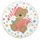 En vacker, sömnig liten brun nalle bär en rosa och vit strimlad natthätta och har en rosa filt. Bakom björnen finns en kudde och flerfärgade stjärnor. Den här söta dressern eller skåpet är perfekt för en liten flickas rum. *Den här designen användor grafik efter Huckleberry Hearts, LLC, © www.Huckleberry-Hearts.com.