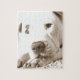 sömnig eget, vänligt, vitt hypofyshat som inte föd pussel