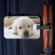 Stängningsbild av en trött 2 veckors gammal labralladdare som ljuger ner på en vit matta och tittar inom stängda dörrar