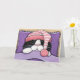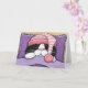 Kattkonsthälsning. Tom inuti. En sovande, svart och vit katt som bär ett rosa och vitt, randigt nattlock. Skapat från en originalmålning 2008 Lisa Marie Robinson