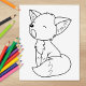 Det söta lilla rävdjuret med stort öron och bushy svan gråter sömnigt. Lämplig för färgning.