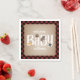 Babyduschservetter med illustration av räv, uggla, björn och tvättbjörn som vilar på texten "BABY". Bakgrunden är brunt karddjur som inspirerats av en röd och svart buffel som pläterats gräns. Anpassa namn.