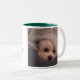 Den Havanese blandningvalpen som ut tittar från under en handduk, med formulera, "gör mig, ser något liknande som jag önskar till utstyrseln?!", Detta valpnamn är Maya, och hon älskar för att sova under en gammal handduk som all slås in upp! Du kan ändra färgen och formatet av koppen, men inte fotografera, som den tas copyrightt på. Original- fotokonst vid tjv335 Copyright2011tjv335