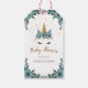 sömnig Unicorn Blue blommigt babyduschmonogram Presentetikett