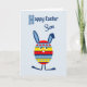 En söt Påskhare till din son i form av ett Påskägg. Äggen dekoreras med rand, zigzager och fläckar i gult, rött och blått, och bakgrunden är ljusblå. Inuti står det i hälsning: "En glad påsk bunny är här för att önska en speciell son mycket Glad påsk!" eller så kan det anpassas till era krav.
