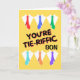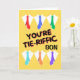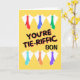 Du är Tie-Riffic Son. Vita skjortor och nektier som blåser i vinden dekorerar omslaget till detta Fars dag-hälsningskort för en son. Art, bild och versell copyright © Shoaff Ballanger Studios, 2024.