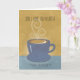 Det här födelsedagskortet för din son har en hett som ångar kopp i kaffe med strömmande ånga och skum. Kopp och aucer är mörk blått på en blå och butterskopisk bakgrund med vattenfärgseffekt. Tunt modernt typsnitt för framhetstecken. Perfekt kan säga att du kärlek honom "en latte".