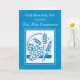 Skicka första kommunisionen önskemål på din son på hans första Heliga. Den blå bakgrunden är texturerad, ge ett speciellt utseende på kortet med druvsymbolerna och vetet ritas på typsnittet.