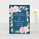 Grattisar på ditt bröllopsdag-kort för son och dotter i juridik med söt rosa vattenfärgblommor, marin blå bakgrund och sentimentalverst.