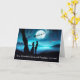 Ett julkort för en son och svärdotter med en charmerande helgdag av ett silhuetterat par under måndagsljuset på julen Kväll, med ett stort fullt, måne, inramat av ett vackert träd och naturligtvis tomten!
