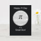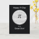 Skicka din son Pi Day önskemål med det här svarta kortet. En vit cirkel fylls med de irrationella siffrorna i Pi när symbolen visas framför.