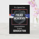 Jag gratulerar er son till hans polisakademi Studenten. En svart bakgrund ställer in den vita texten. Flagga viks bakom badgeformen.
