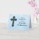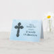 Din son är en generös man som älskar Gud och människor. Önska honom det bästa och låt honom veta att du är stolt över honom på hans prästvigning med detta vackra och eleganta gratulationskort. En kristen design med ett stort och vackert ornament korskryss på en ljusblå bakgrund med ett religiöst budskap.