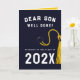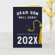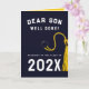 Kreativ son-studenten-kort för klass "25 grad" med ett flotttak och guld-tassel. Redigera text som ska läggas till namn.