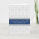Grattis till vår son och svärdotter på deras bröllopsdag kort. Elegant och modern med klassiskt blomster vintage damaskmönster i mörk marinblå, grå och vit, det perfekta sättet att berätta för dem hur stolta ni är på denna speciella dag.