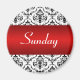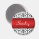"Days of the Week"-magnet i Söndag med ett rött rand över svarta och vita dammar. Ordna alla kylskåp eller magnetskivor med den här magneten och de andra matchande magneter som fyller i uppsättningen. Var och en sålde separat, ingen minimiorder. Välj din storleka magnet.