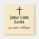 Söndag skollärarmagnet med citat: "Du gör skillnad" och kor accent. Rosa polka punkt mönster med ljus gult bakgrund.