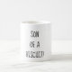 sonen av en ljusbrun granny svär kaffemugg