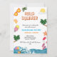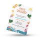 Den här sommartematiska designen har en gräns av sommarteman och modern skripttyp för dina party-detaljer. Sunglass, sandaler, glass, sol, tropiska växter, blommor, paraply, flinflip flops, strand bollar och mycket mer kan hittas längs gräns! Om du vill redigera ordalydelsen klickar du på knappen "Anpassa den här mallen".