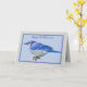 Denna älskvärda blått Jay ser fridsam med hans vapensköld, som står normalt upprätt som ljuger besegrar mot hans huvud. Han gör ett älskvärt födelsedaghälsningkort.