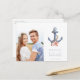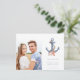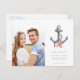 glädjen i ditt kommande strandbröllop med vårt Coastal Nautical Photo Beach Wedding Spara vykortet för datum. Med ett nautiska ankare som är förankrad i sjöbottnar fångar den här designen perfekt din firande havsbottenanda. Ett vackert foto av paret ger en personlig och hjärtfull beröring. Idealisk för ge gäster en minnesvärd och snyggt påminnelse om att spara datumet för bröllop vid kusten!