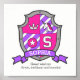 Riddarstil sköld monogram S konstnamn poster perfekt för ett barnrum, sovrum eller lekrum i nyanser av rosa, lila och grått. Personifiera med ditt barns eget namn och namn betydelse för en verkligt personlig touch i ditt barns sovrum eller barnrum, detta exempel är för namnet Sophia Stor visdom. Skarp, intelligent och vacker. Postertryck idealiskt som en gåva för en dop, ny bebis eller namngivningsgåva för bebis. Unik sköld ritning, grafisk konst och design av Sarah Trett. www.sarahtrett.com för www.mylittleeden.com