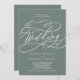 Den här moderna, tropiska gröntens enkla bröllopsinbjudan från Sophia Collection är perfekt för ett enkelt bröllop. Den moderna klassiska designen har finare-snurrar och vitaktiga blomningar med en elegant elegant, handskriven typografi.