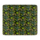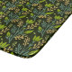 Seamless floral pattern with green leaves and buds on a dark background, featuring intricate blue and beige branches, evoking a natural, elegant feel.