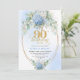 Sophisticated Boho Blue Floral Gold 90th Birthday Inbjudningar
