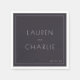 This wedding napkin features a minimalist design with a deep charcoal background, creating an elegant and sophisticated look. The layout is clean and modern, showcasing the names "Lauren" and "Charlie" in large, uppercase letters with a simple sans-serif font that emphasizes clarity and balance. A subtle date is included at the bottom right corner, adding a personal touch without distracting from the overall simplicity of the design. Perfect for couples who appreciate understated elegance, this napkin is ideal for formal weddings or chic celebrations.