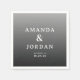 This wedding napkin design features a minimalist layout with a gradient background transitioning from light to dark gray, creating a sophisticated and modern look. The clean serif typography adds an elegant touch, prominently displaying the names in bold letters while allowing for customizable placeholders for location and date. The overall style is understated yet refined, perfect for formal celebrations that value both tradition and contemporary aesthetics. Its calm and composed mood makes it ideal for weddings or other special occasions where elegance and clarity are key.