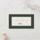 This wedding place card features a minimalist design with a dark green rectangular frame and ample white space, creating an elegant and uncluttered look. The layout includes two horizontal lines for customization and the word "table" in a stylish cursive script font, adding a touch of sophistication. The modern aesthetic emphasizes clean typography and geometric shapes, making it perfect for formal events where organization and presentation are key. Its simple yet refined style conveys a sense of order and calmness, ideal for weddings or upscale gatherings.
