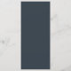This elegant wedding menu features a sophisticated, vertically oriented layout with a deep navy blue background. The design uses a mix of cursive and serif fonts to create a luxurious feel, with clear section headings for starters, salad, main course, and dessert. The minimalist color palette of white text on navy enhances readability and adds a modern touch. Centered alignment and generous spacing contribute to the balanced composition, making it perfect for a high-end dining experience.