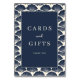 This elegant wedding tabletop sign features a sophisticated navy blue background framed by stylized seashell motifs in a lighter shade of blue, creating a calming nautical theme. The central text, "CARDS and GIFTS" followed by "THANK YOU," is displayed in classic serif typography that adds a touch of timeless elegance. The balanced layout with ample negative space ensures the message stands out clearly, making it perfect for expressing gratitude at your special event. Ideal for formal occasions, this design combines illustrative artistry with a refined aesthetic to enhance any celebration setting.