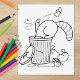 Tecknad rackoon gräver genom en sopor-burk. Dess huvud göms ner i burken, bara dess kropp och slit ut. Ett locket, några sopor-påsar och fiskben ligger nära behållaren. Lämplig för färgning.