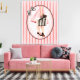 Snyggt dam handlar med fransk bulldog-valp på stripy rosa-bakgrunden. Designad av konstnären Maryline Cazenave.