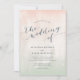Elegant och summeri pastellskuggor av peachy rosa och pistachio grönt, vår Sorbet-bröllopsinbjudan har en vattenfärg som tvättar bakgrund i ren ombre-gradientnyans, accentuerad med chicens kalligrafi och serif-lettering i dammig skiffer.