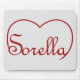 Den italienska ord för syster är Sorella. Klar i rött skript och stoppad inuti överdelen av hjärtat.