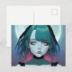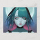 Sorglig Anime Kvinna Blå Ögon Postkort Vykort